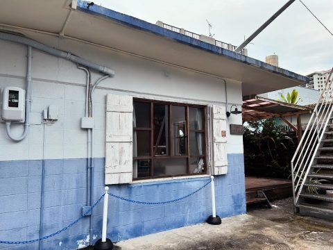 「洋飯屋 げんじっと」は、外人住宅を改装した小さな隠れ家カフェ(1戸建て:白と青の建物)